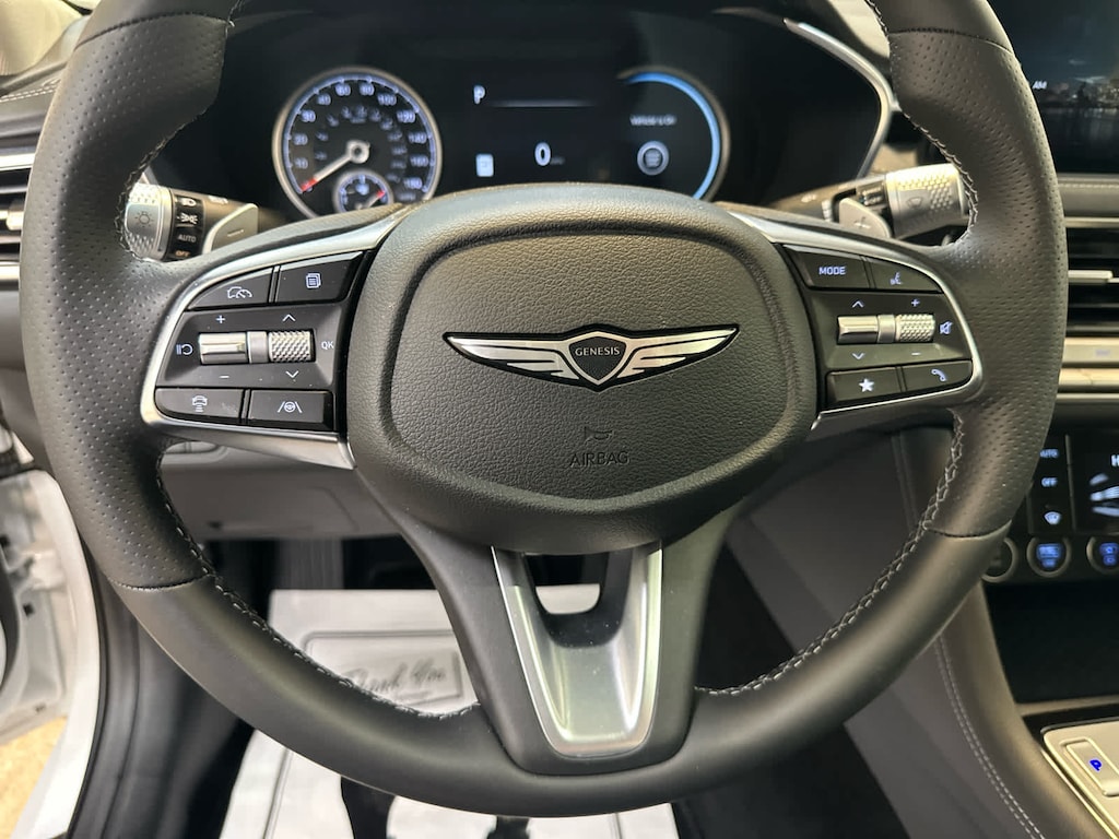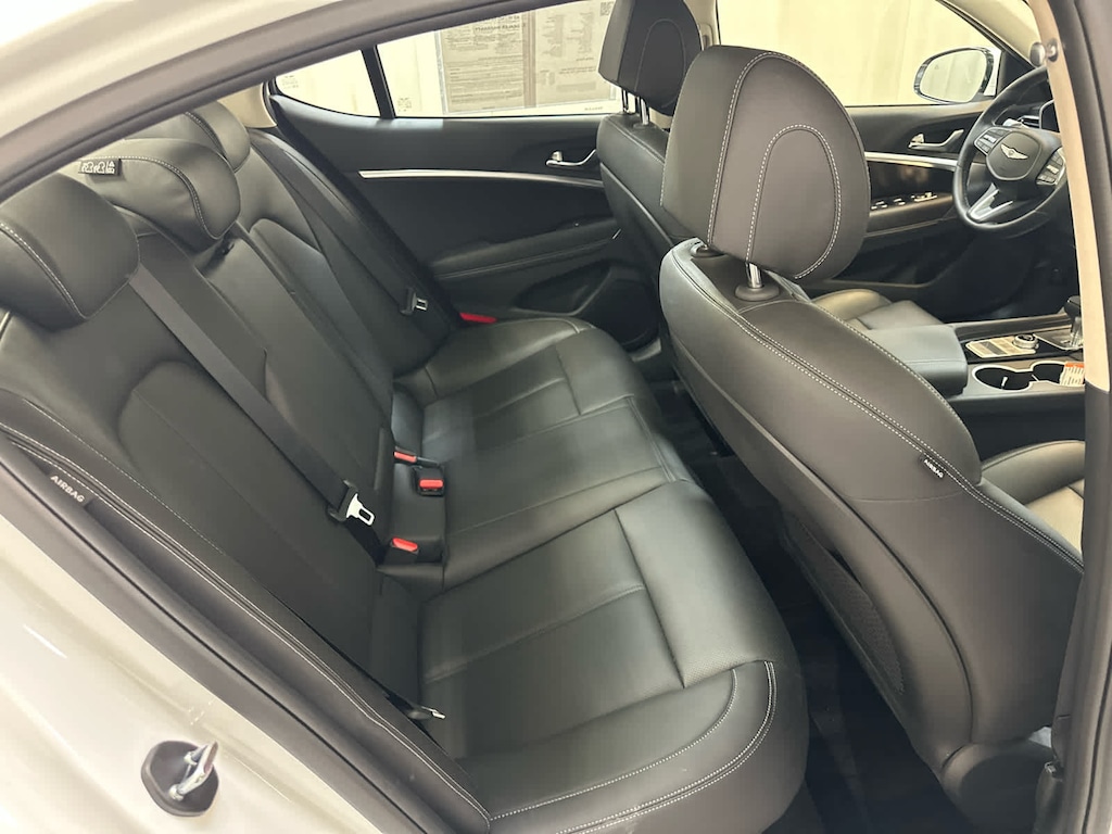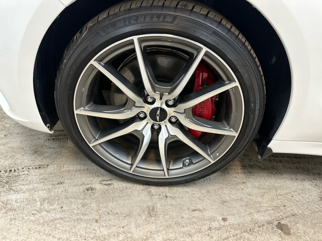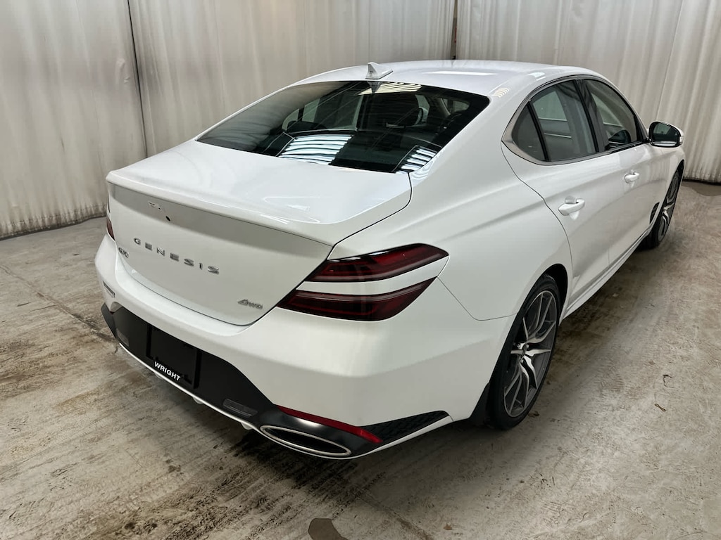 Navigation, All Wheel Drive, Heated Driver Seat, Back-Up Camera, Turbocharged, Satellite Radio, iPod/MP3 Input, Onboard Communications System, Aluminum Wheels, Keyless Start, Dual Zone A/C, Blind Spot Monitor, Hands-Free Liftgate, Apple CarPlay®, Cross-Traffic Alert Genesis 2.5T with Uyuni White exterior and Obsidian Black interior features a 4 Cylinder Engine with 300 HP at 5800 RPM*.