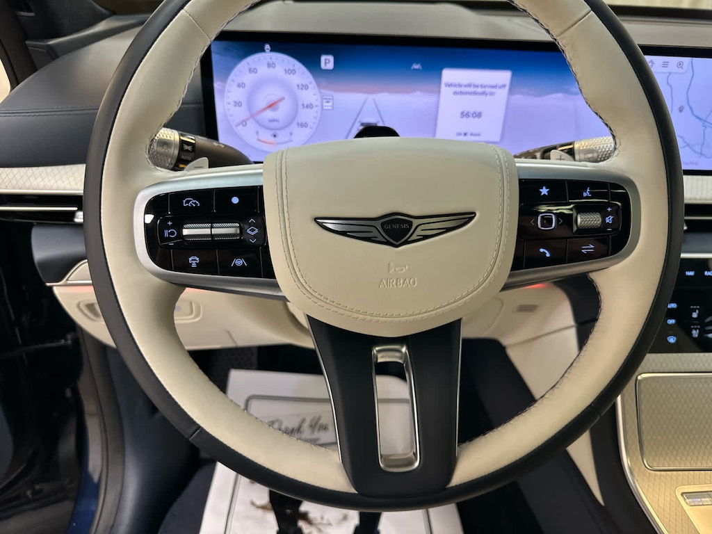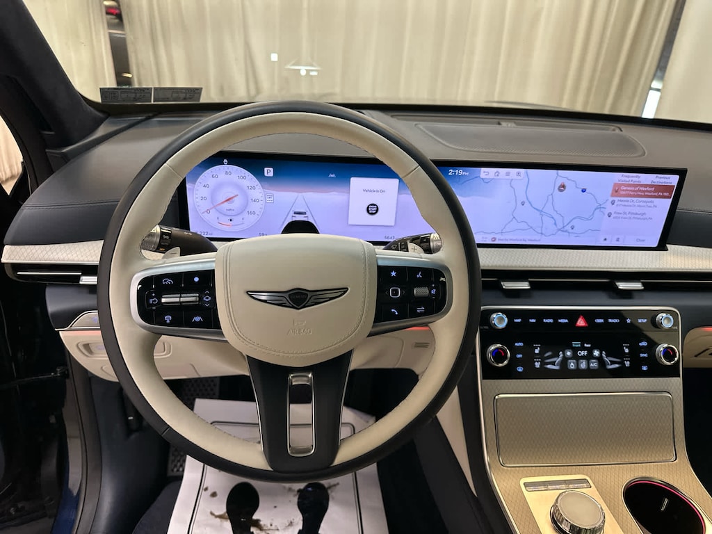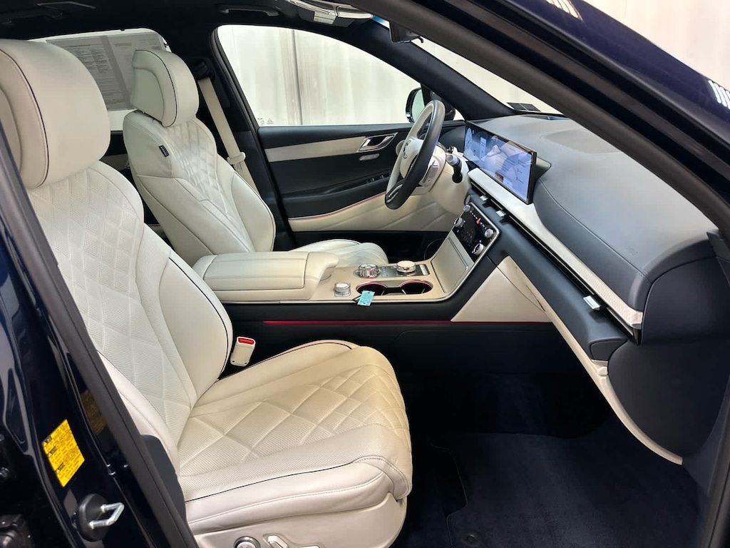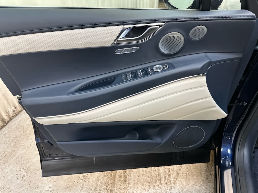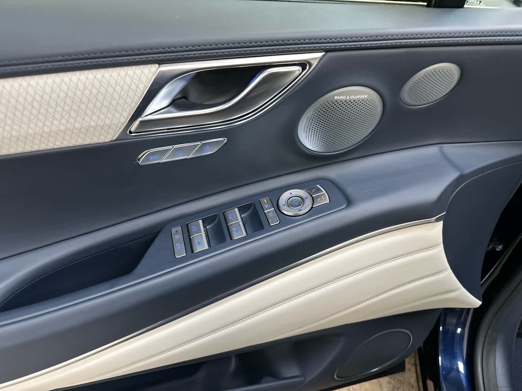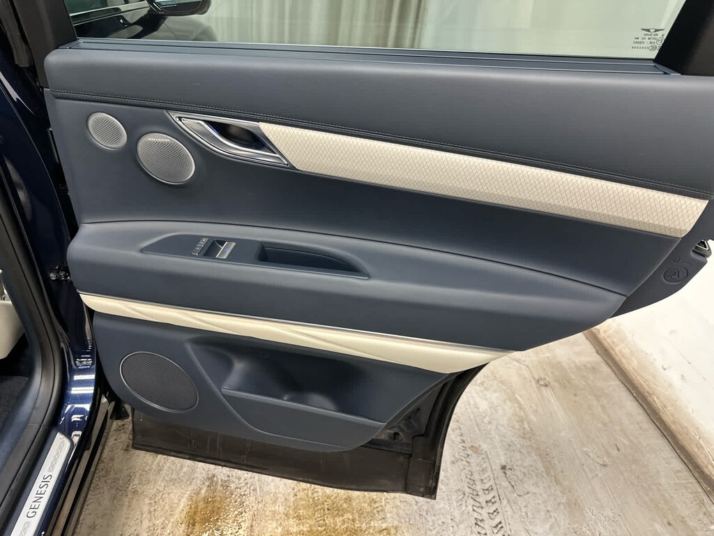 Leather Seats, Navigation, All Wheel Drive, Power Liftgate, Rear Air, Heated Driver Seat, Heated Rear Seat, Cooled Driver Seat, Cooled Rear Seat, Back-Up Camera, Turbocharged, Premium Sound System, Satellite Radio, iPod/MP3 Input, Onboard Communications System Genesis Prestige with Capri Blue exterior and Glacier White/Blue interior features a V6 Cylinder Engine with 375 HP at 5800 RPM*.