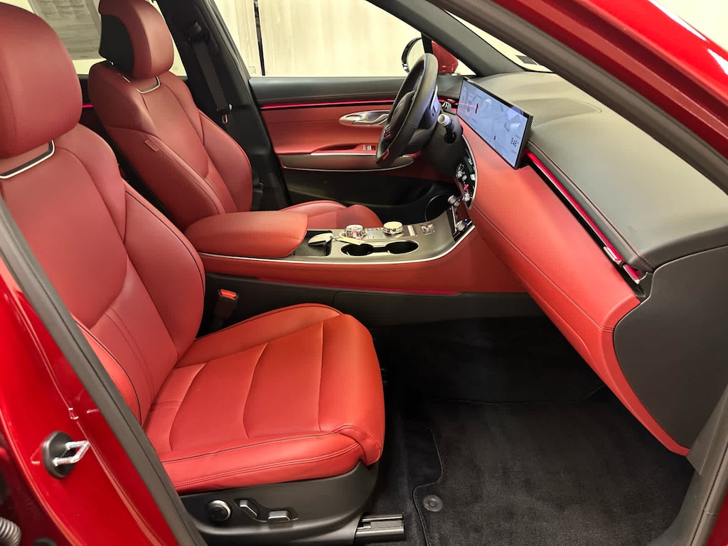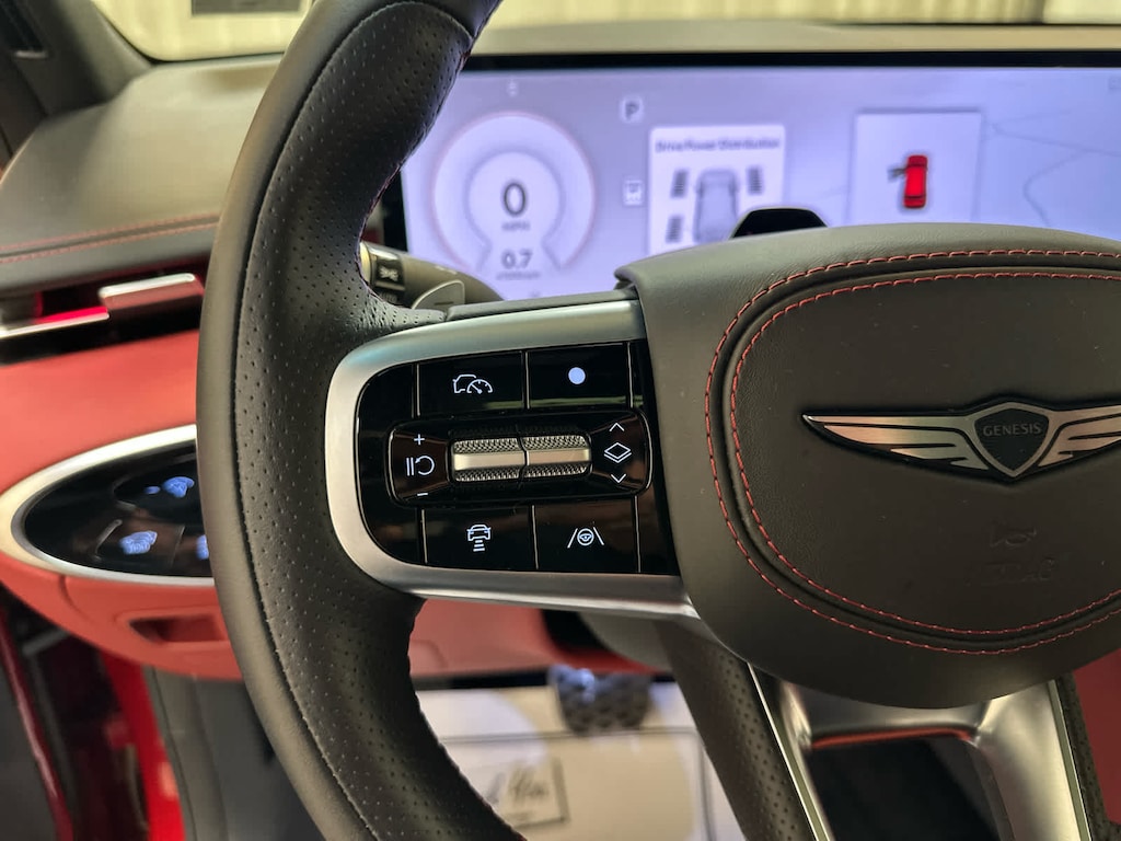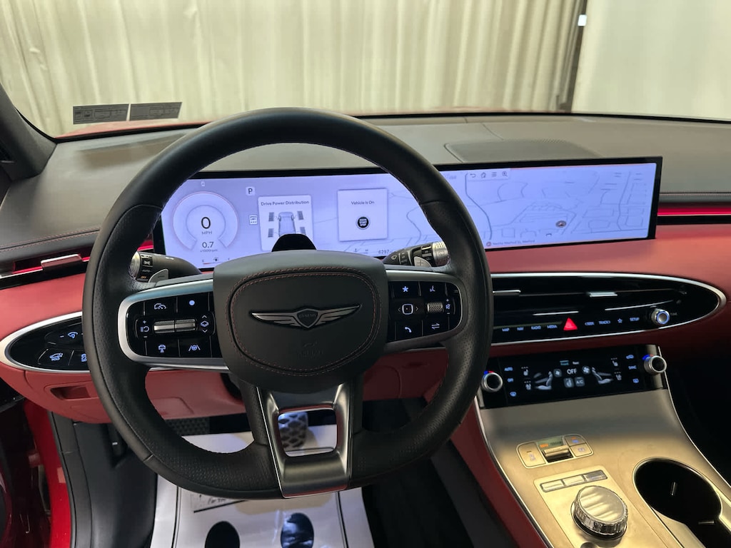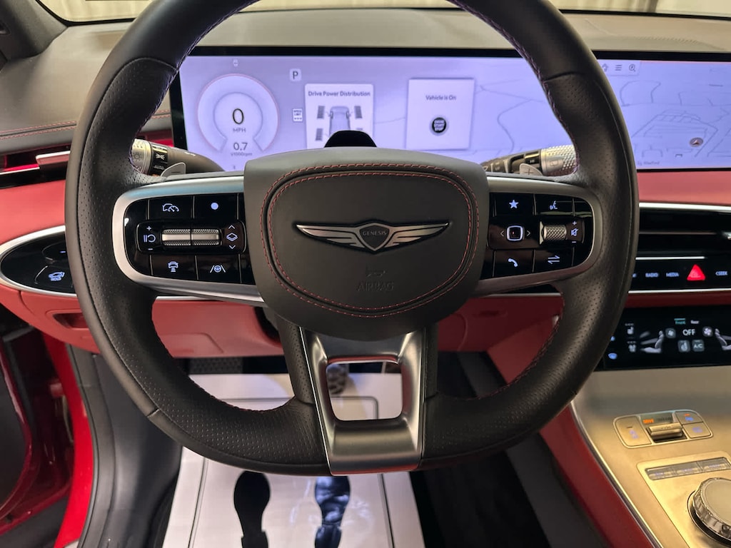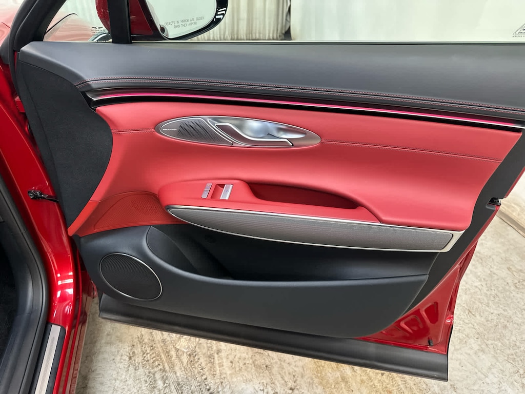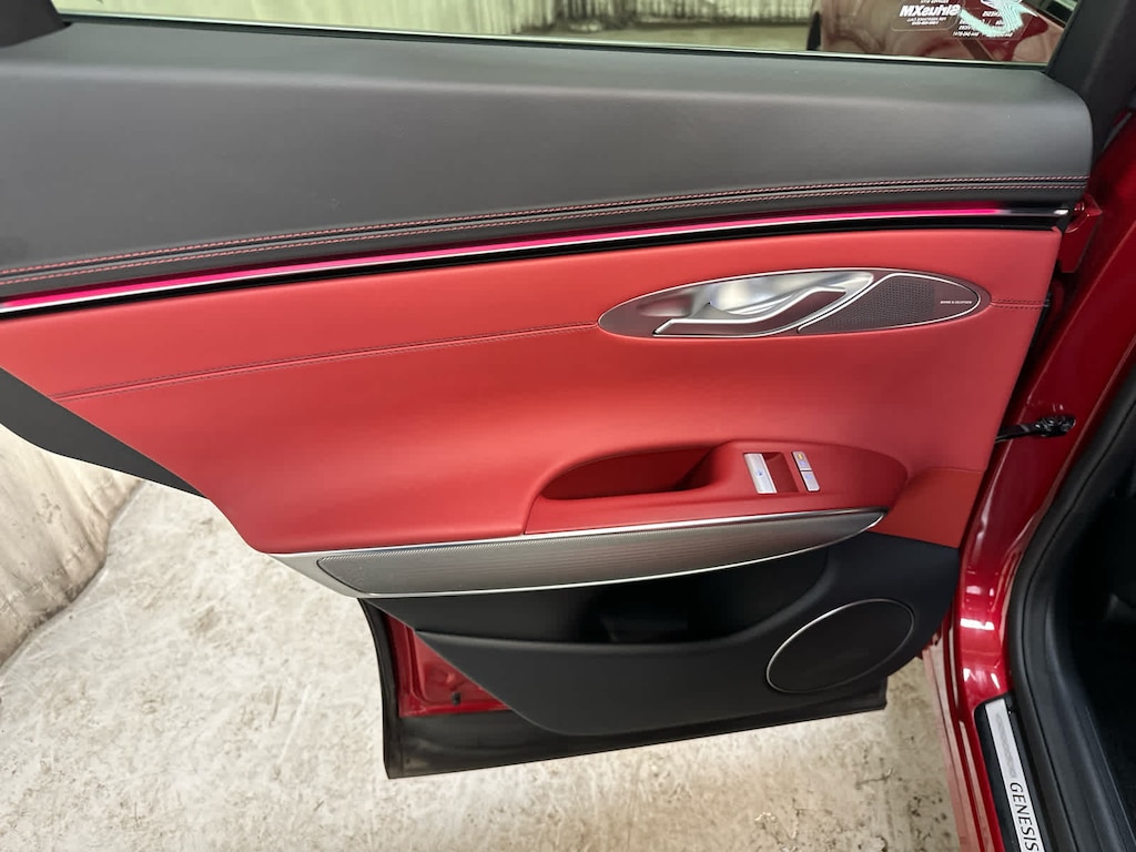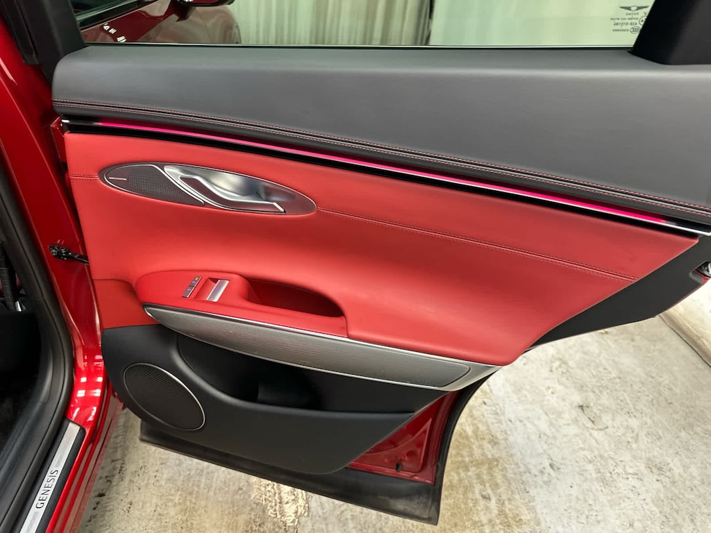 Leather Seats, Navigation, Sunroof, Panoramic Roof, All Wheel Drive, Power Liftgate, Heated Driver Seat, Cooled Driver Seat, Back-Up Camera, Premium Sound System, Satellite Radio, iPod/MP3 Input, Onboard Communications System, Aluminum Wheels, Remote Engine Start Genesis 3.5T Sport Advanced with Mauna Red exterior and Sevilla Red/Obsidian Blk interior features a V6 Cylinder Engine with 375 HP at 5800 RPM*.