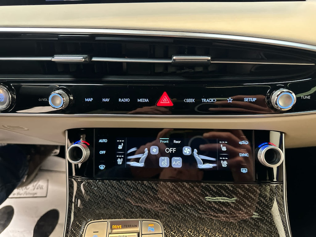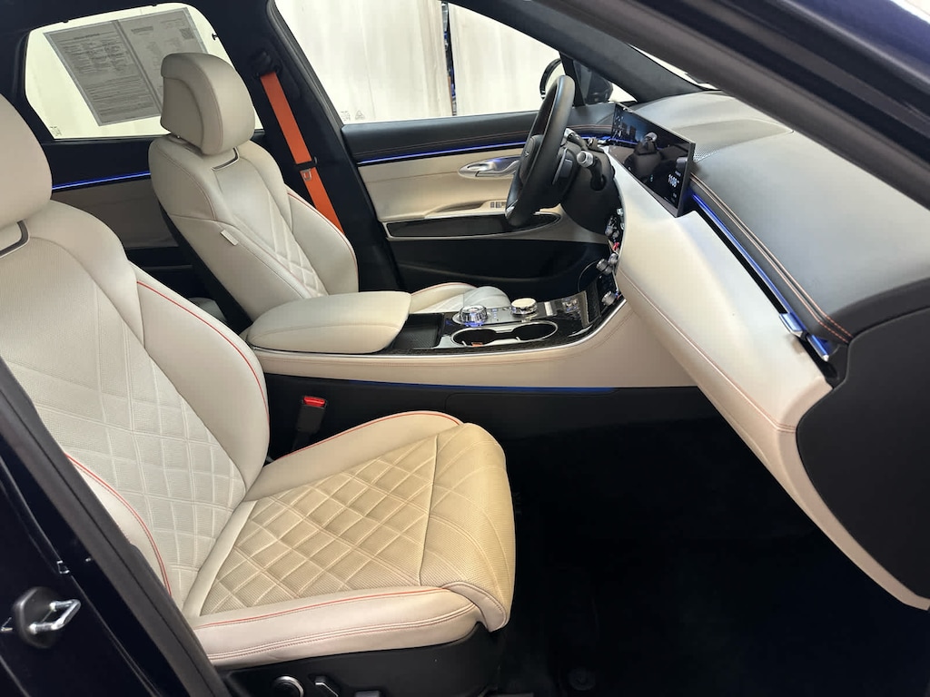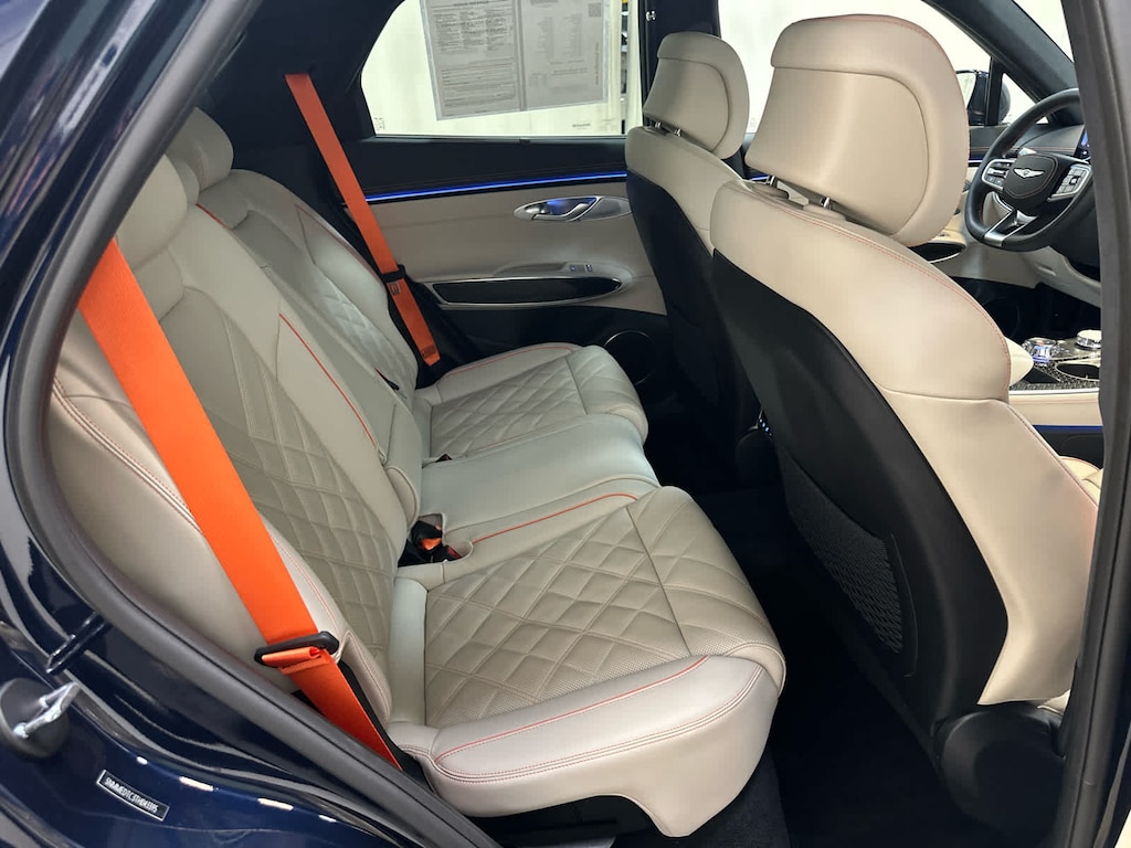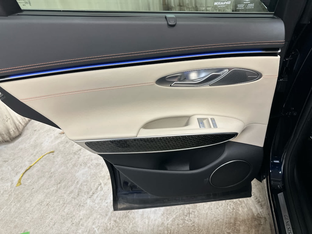 Leather Seats, Navigation, Sunroof, Panoramic Roof, Power Liftgate, Rear Air, Heated Driver Seat, Heated Rear Seat, Cooled Driver Seat, Back-Up Camera, Premium Sound System, Satellite Radio, iPod/MP3 Input, Onboard Communications System, Aluminum Wheels Genesis 3.5T Sport Prestige with Capri Blue exterior and Vanilla Beige/Black interior features a V6 Cylinder Engine with 375 HP at 5800 RPM*.