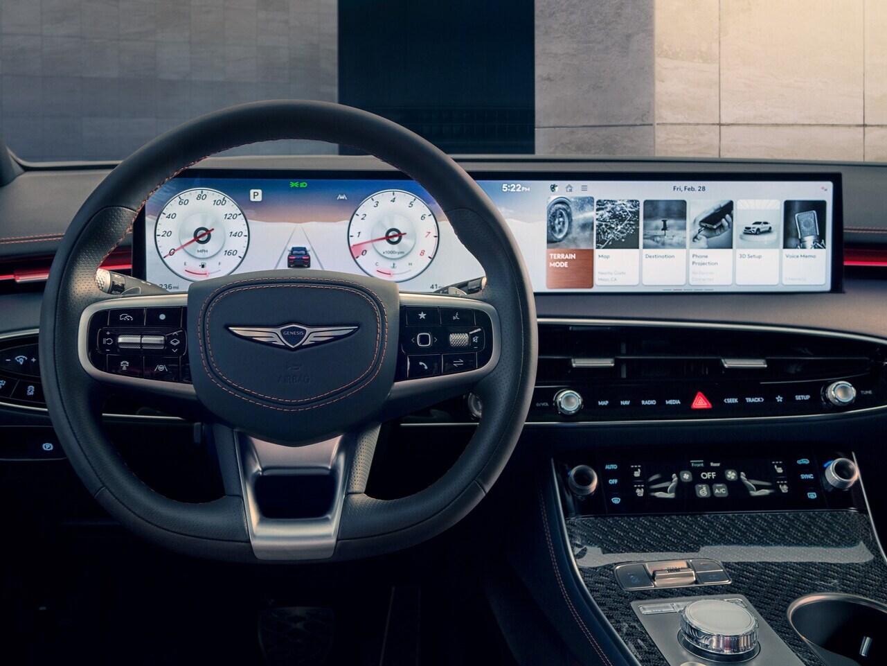 The Genesis includes innovative features like Machine Learning-based Smart Cruise Control and Highway Driving Assist II as standard equipment, while similar Mercedes driver assistance features often require expensive option packages. The GV70's blind spot monitor displays a live video feed in the instrument cluster when signaling, a feature the GLC lacks. Additionally, the Genesis's safe exit assist prevents doors from opening when traffic approaches, providing an extra layer of protection that Mercedes doesn't offer.