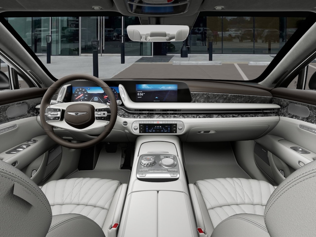 Leather Seats, Navigation, Sunroof, Panoramic Roof, Rear Air, Heated Driver Seat, Heated Rear Seat, Cooled Driver Seat, Cooled Rear Seat, Back-Up Camera, Premium Sound System, Satellite Radio, iPod/MP3 Input, Onboard Communications System, Aluminum Wheels Genesis e-SC with Makalu Gray Matte exterior and Urban Brown/Glacier White interior features a V6 Cylinder Engine with 409 HP at 5800 RPM*.