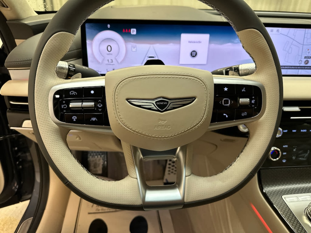 Leather Seats, Navigation, Sunroof, Panoramic Roof, Power Liftgate, Rear Air, Heated Driver Seat, Heated Rear Seat, Cooled Driver Seat, Back-Up Camera, Premium Sound System, Satellite Radio, iPod/MP3 Input, Onboard Communications System, Aluminum Wheels. Genesis 3.5T Sport Prestige with Ceres Blue exterior and Vanilla Beige/Ash Gray interior features a V6 Cylinder Engine with 375 HP at 5800 RPM*. MP3 Player, Remote Trunk Release, Keyless Entry, Child Safety Locks, Steering Wheel Controls.