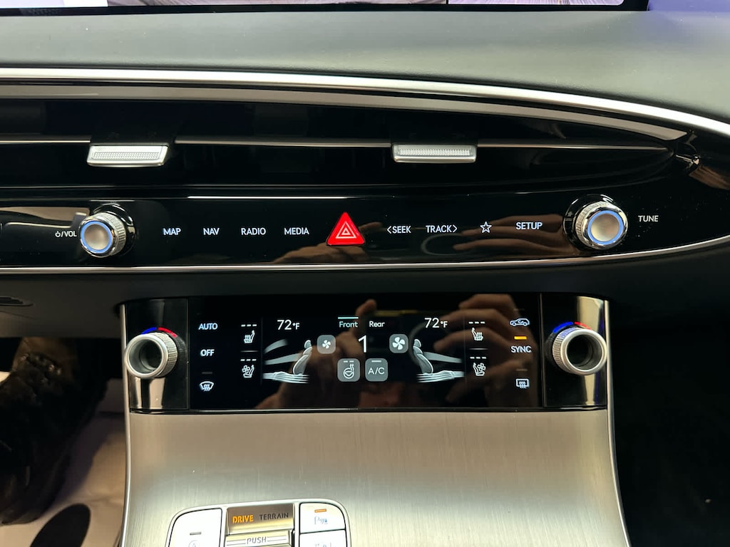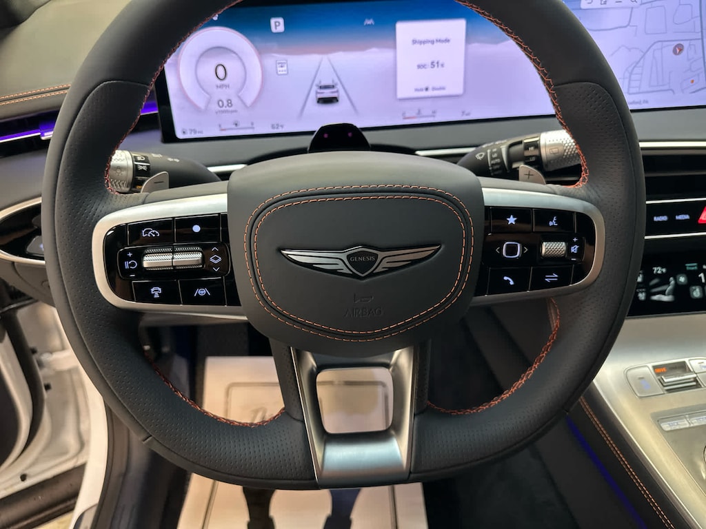 Leather Seats, Navigation, Sunroof, Panoramic Roof, Power Liftgate, Heated Driver Seat, Cooled Driver Seat, Back-Up Camera, Premium Sound System, Satellite Radio, iPod/MP3 Input, Onboard Communications System, Aluminum Wheels, Remote Engine Start, Dual Zone A/C. Genesis 3.5T Sport Advanced with Uyuni White exterior and Ultramarine Blue interior features a V6 Cylinder Engine with 375 HP at 5800 RPM*.