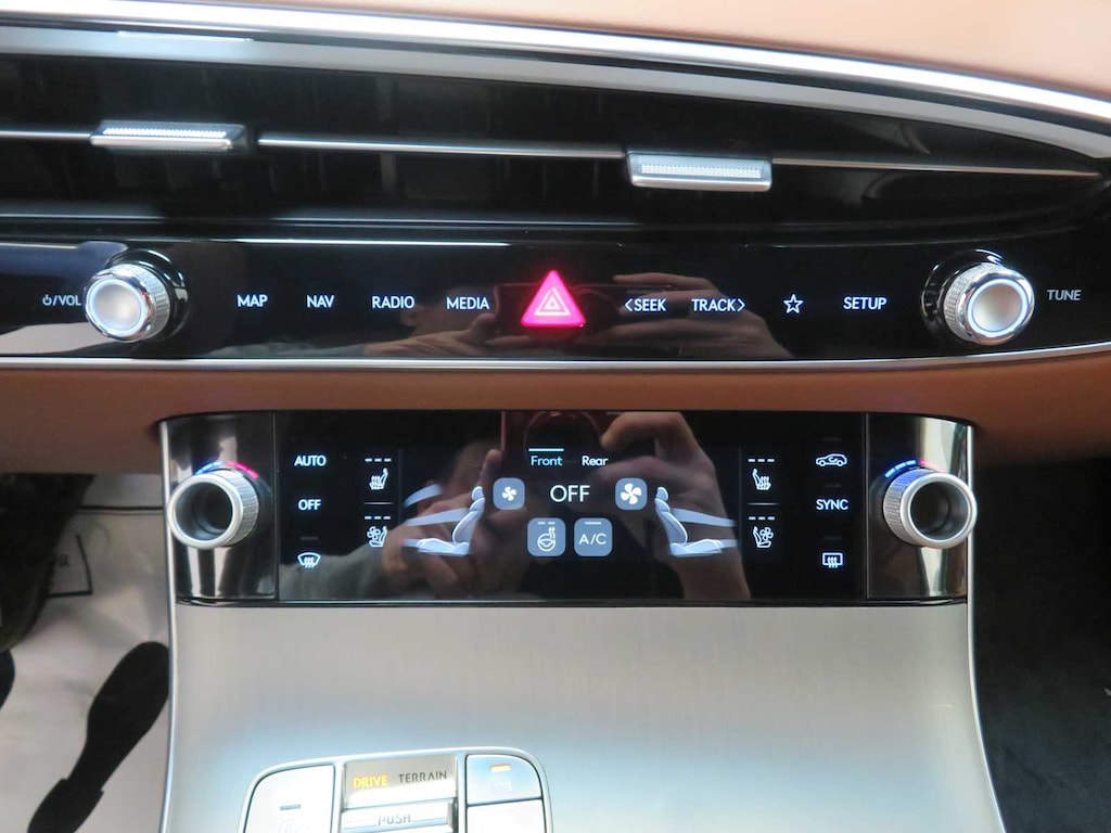 Leather Seats, Navigation, Sunroof, Panoramic Roof, All Wheel Drive, Power Liftgate, Heated Driver Seat, Cooled Driver Seat, Back-Up Camera, Turbocharged, Premium Sound System, Satellite Radio, iPod/MP3 Input, Onboard Communications System, Aluminum Wheels. Genesis 2.5T Advanced with Savile Silver exterior and Havana Brown/Ocean Waves interior features a 4 Cylinder Engine with 300 HP at 5800 RPM*.