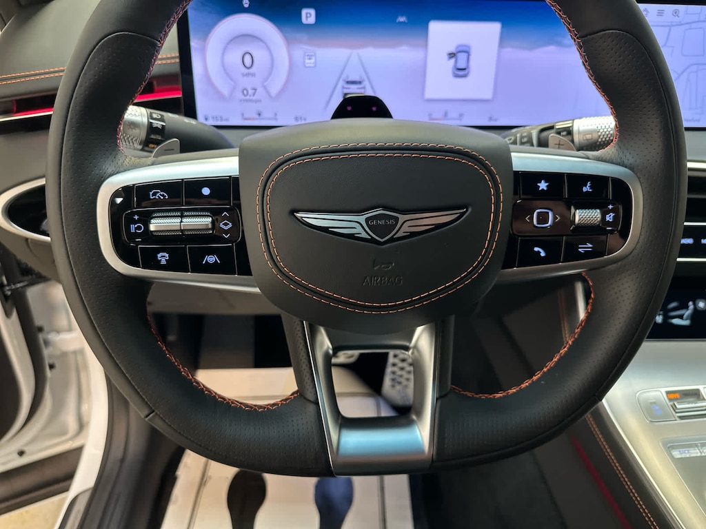 Leather Seats, Navigation, Sunroof, Panoramic Roof, Power Liftgate, Heated Driver Seat, Cooled Driver Seat, Back-Up Camera, Premium Sound System, Satellite Radio, iPod/MP3 Input, Onboard Communications System, Aluminum Wheels, Remote Engine Start, Dual Zone A/C Genesis 3.5T Sport Advanced with Uyuni White exterior and Obsidian Black interior features a V6 Cylinder Engine with 375 HP at 5800 RPM*.