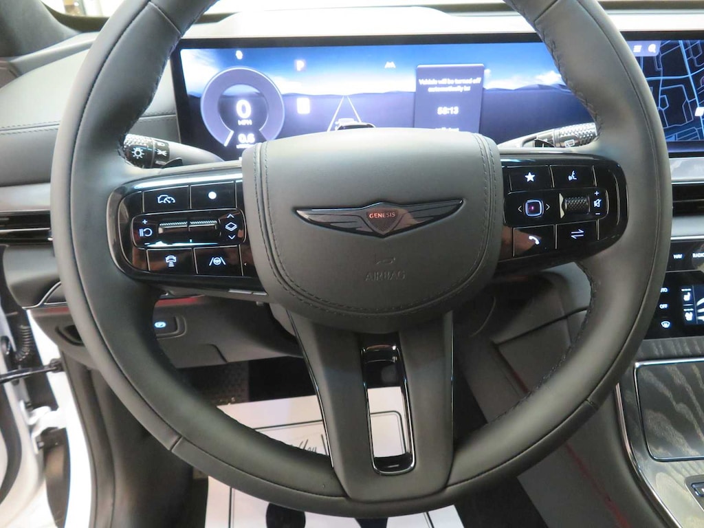 Leather Seats, Navigation, All Wheel Drive, Power Liftgate, Rear Air, Heated Driver Seat, Heated Rear Seat, Cooled Driver Seat, Cooled Rear Seat, Back-Up Camera, Turbocharged, Premium Sound System, Satellite Radio, iPod/MP3 Input, Onboard Communications System Genesis Prestige Black with Uyuni White exterior and Obsidian Black interior features a V6 Cylinder Engine with 375 HP at 5800 RPM*. Rear Spoiler, MP3 Player, Keyless Entry, Remote Trunk Release, Privacy Glass.