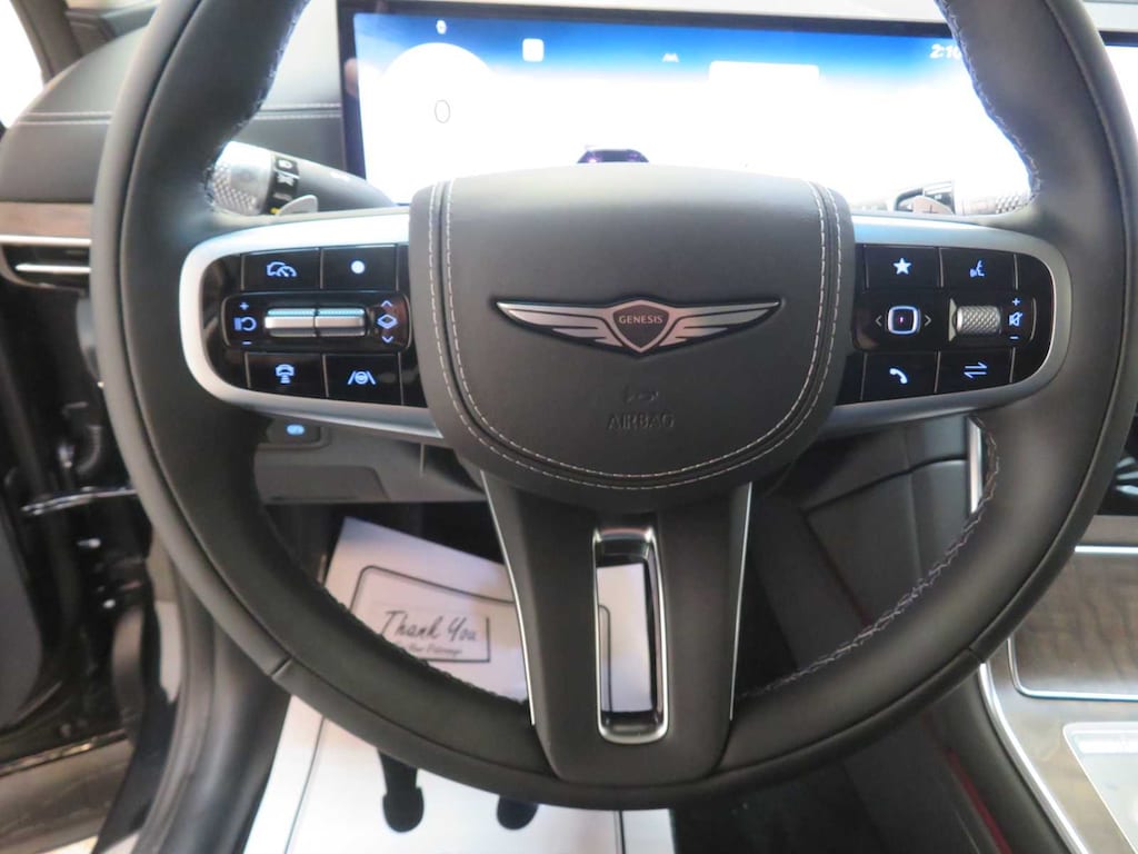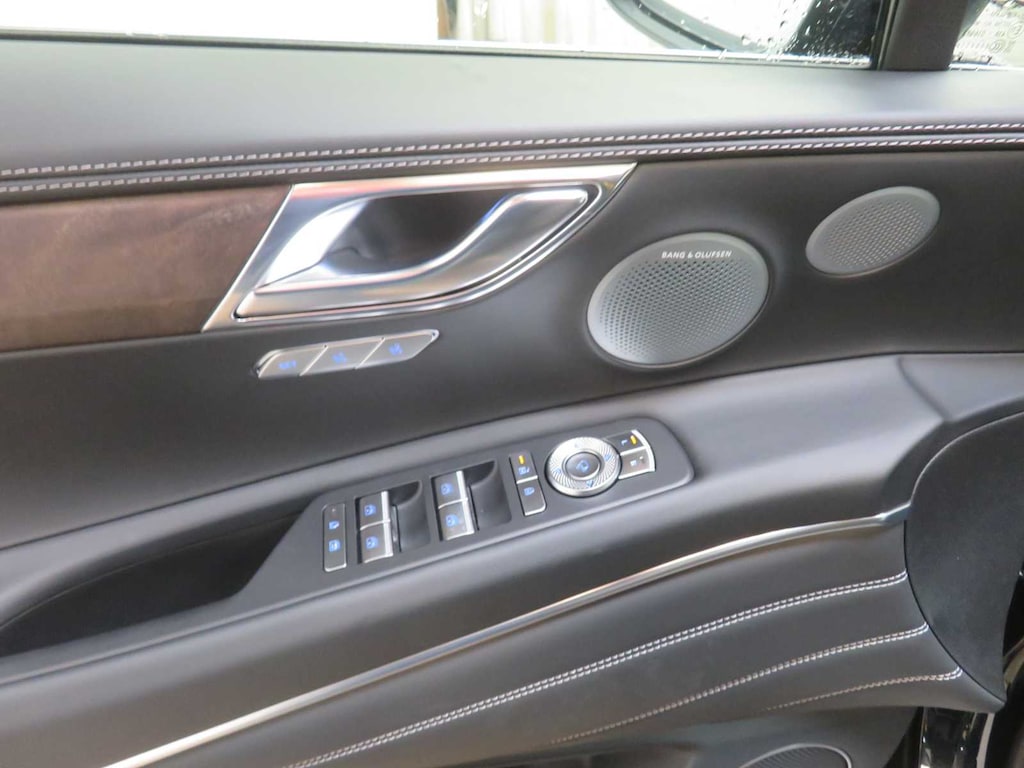 Leather Seats, Third Row Seat, Navigation, All Wheel Drive, Power Liftgate, Rear Air, Heated Driver Seat, Heated Rear Seat, Cooled Driver Seat, Cooled Rear Seat, Back-Up Camera, Turbocharged, Premium Sound System, Satellite Radio, iPod/MP3 Input Genesis Prestige with Vik Black exterior and Obsidian Black interior features a V6 Cylinder Engine with 375 HP at 5800 RPM*.