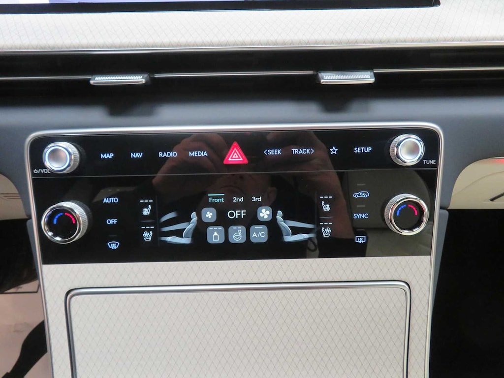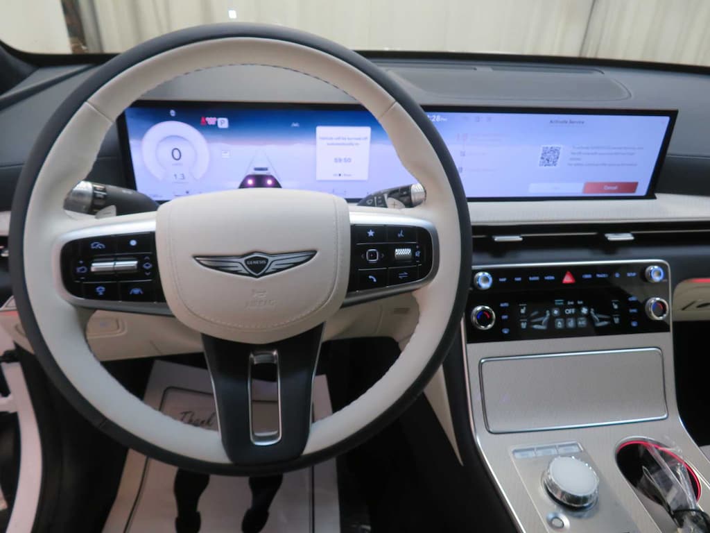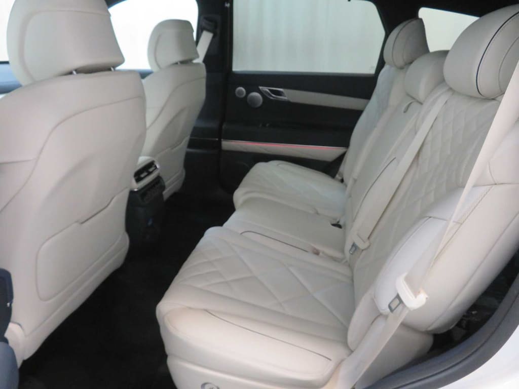 Leather Seats, Third Row Seat, Navigation, All Wheel Drive, Power Liftgate, Rear Air, Heated Driver Seat, Heated Rear Seat, Cooled Driver Seat, Cooled Rear Seat, Back-Up Camera, Turbocharged, Premium Sound System, Satellite Radio, iPod/MP3 Input Genesis Prestige with Uyuni White exterior and Glacier White/Blue interior features a V6 Cylinder Engine with 375 HP at 5800 RPM*.