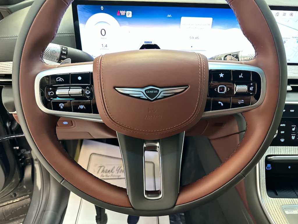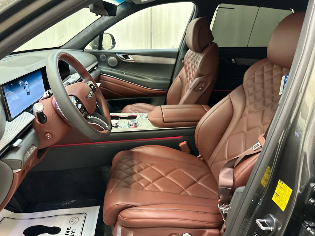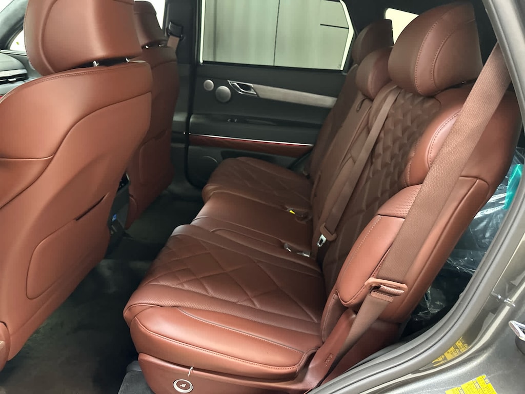 Leather Seats, Third Row Seat, Navigation, Power Liftgate, Rear Air, Heated Driver Seat, Heated Rear Seat, Cooled Driver Seat, Cooled Rear Seat, Back-Up Camera, Premium Sound System, Satellite Radio, iPod/MP3 Input, Onboard Communications System, Dual Moonroof. Genesis Prestige with Makalu Gray exterior and Bordeaux Brown/Slate Gray interior features a V6 Cylinder Engine with 375 HP at 5800 RPM*.