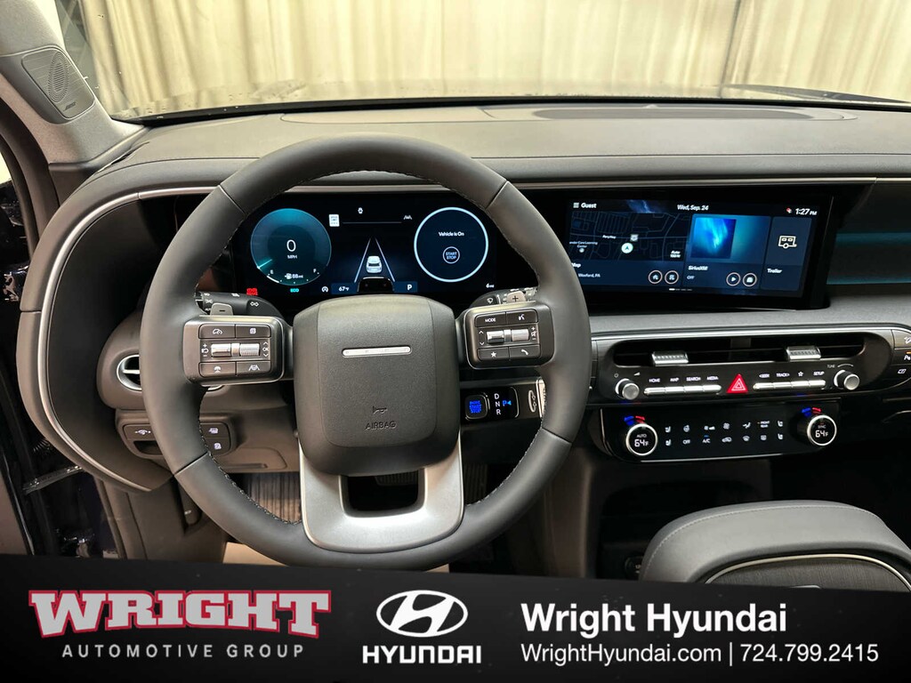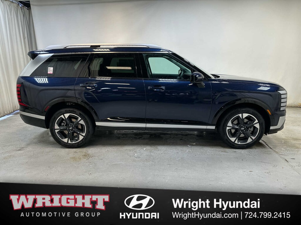 Leather Seats, Third Row Seat, Navigation, Quad Bucket Seats, Power Liftgate, Rear Air, Heated Driver Seat, Heated Rear Seat, Cooled Driver Seat, Cooled Rear Seat, Back-Up Camera, Premium Sound System, Satellite Radio, iPod/MP3 Input, Onboard Communications System. Hyundai Limited with Classy Blue Pearl exterior and Black interior features a V6 Cylinder Engine with 287 HP at 5800 RPM*.