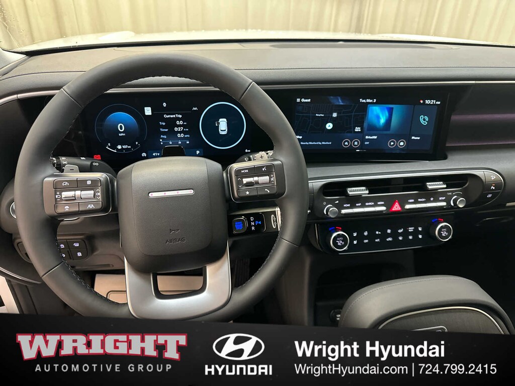 Third Row Seat, Navigation, Sunroof, Power Liftgate, Rear Air, Heated Driver Seat, Heated Rear Seat, Cooled Driver Seat, Cooled Rear Seat, Back-Up Camera, Satellite Radio, iPod/MP3 Input, Onboard Communications System, Aluminum Wheels, Remote Engine Start Hyundai SEL Premium 8P with Creamy White Pearl exterior and Black interior features a V6 Cylinder Engine with 287 HP at 5800 RPM*.