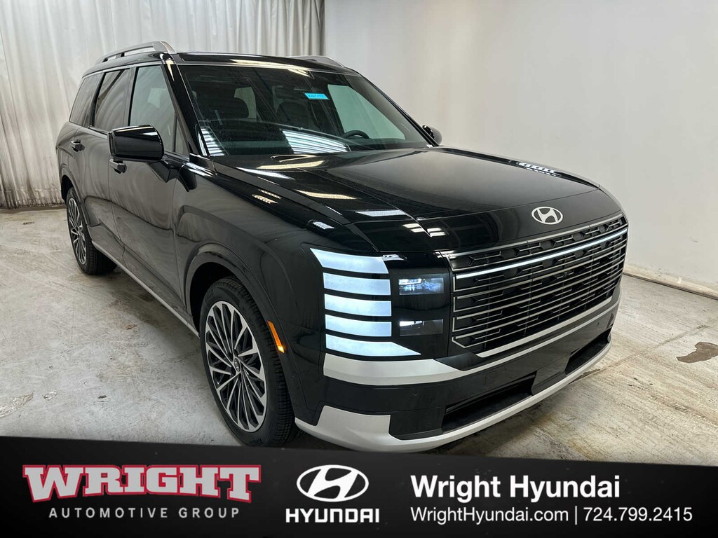 Leather Seats, Third Row Seat, Navigation, Quad Bucket Seats, Power Liftgate, Rear Air, Heated Driver Seat, Heated Rear Seat, Cooled Driver Seat, Cooled Rear Seat, Back-Up Camera, Premium Sound System, Satellite Radio, iPod/MP3 Input, Onboard Communications System. Hyundai Calligraphy with Abyss Black Pearl exterior and Black interior features a V6 Cylinder Engine with 287 HP at 5800 RPM*.