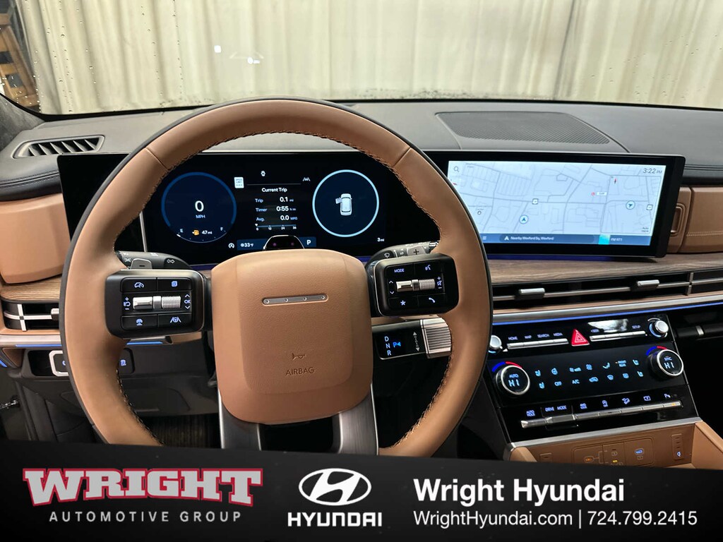 Leather Seats, Third Row Seat, Navigation, All Wheel Drive, Quad Bucket Seats, Power Liftgate, Heated Driver Seat, Heated Rear Seat, Cooled Driver Seat, Back-Up Camera, Turbocharged, Premium Sound System, Satellite Radio, iPod/MP3 Input, Onboard Communications System. Hyundai Calligraphy with Rockwood Green exterior and Pecan Brown interior features a 4 Cylinder Engine with 277 HP at 5800 RPM*.