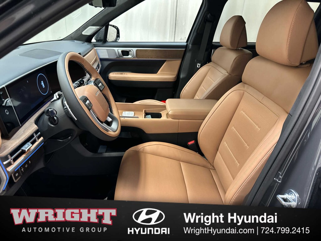 Leather Seats, Third Row Seat, Navigation, Quad Bucket Seats, Power Liftgate, Heated Driver Seat, Heated Rear Seat, Cooled Driver Seat, Back-Up Camera, Premium Sound System, Satellite Radio, iPod/MP3 Input, Onboard Communications System, Dual Moonroof, Aluminum Wheels. Hyundai Calligraphy with Ecotronic Gray exterior and Pecan Brown interior features a 4 Cylinder Engine with 231 HP at 5500 RPM*.