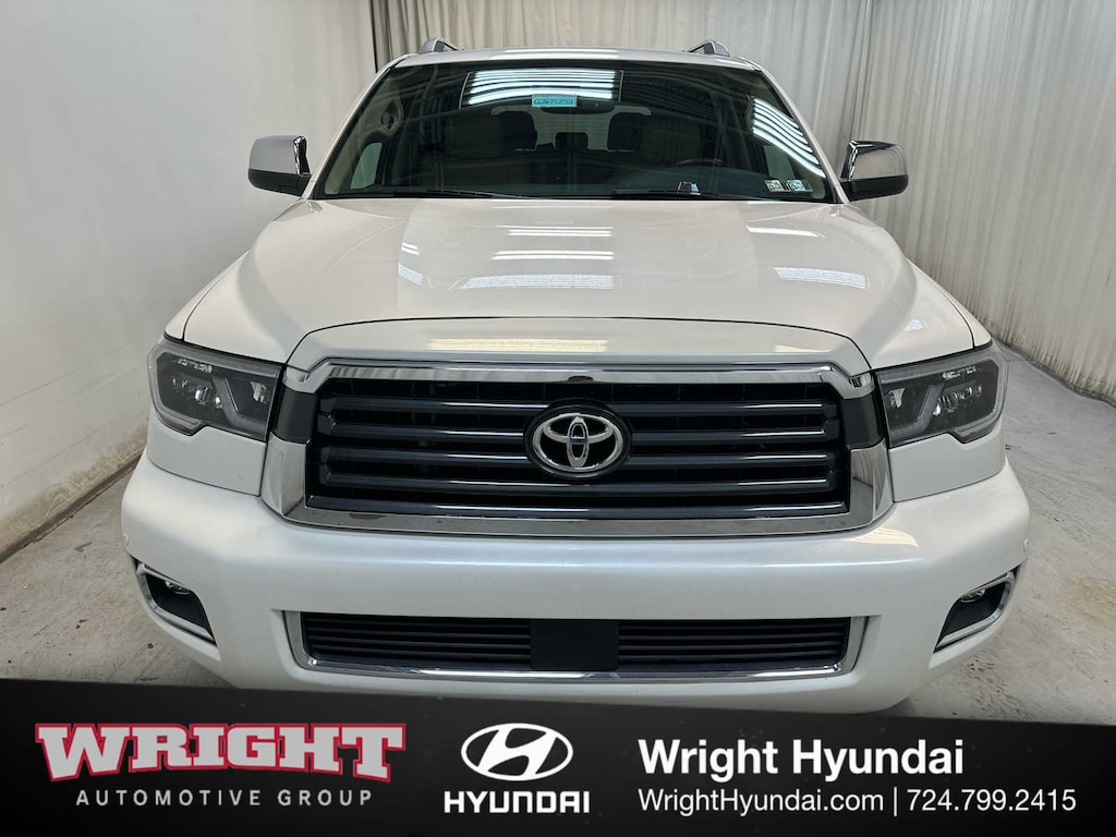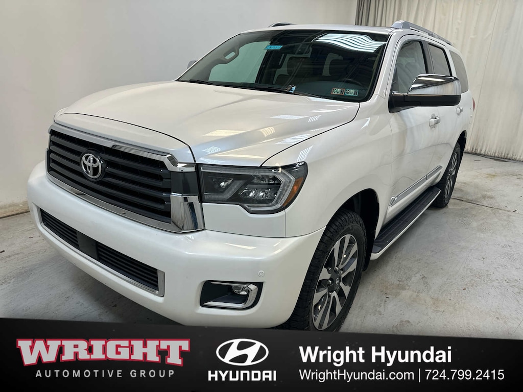 Leather Seats, Third Row Seat, Sunroof, Power Liftgate, Rear Air, Heated Driver Seat, Back-Up Camera, Running Boards, Trailer Hitch, Aluminum Wheels, Keyless Start, Dual Zone A/C, Cross-Traffic Alert, Brake Actuated Limited Slip Differential, Blind Spot Monitor Toyota Limited with Blizzard Pearl exterior and Sand Beige interior features a 8 Cylinder Engine with 381 HP at 5600 RPM*.